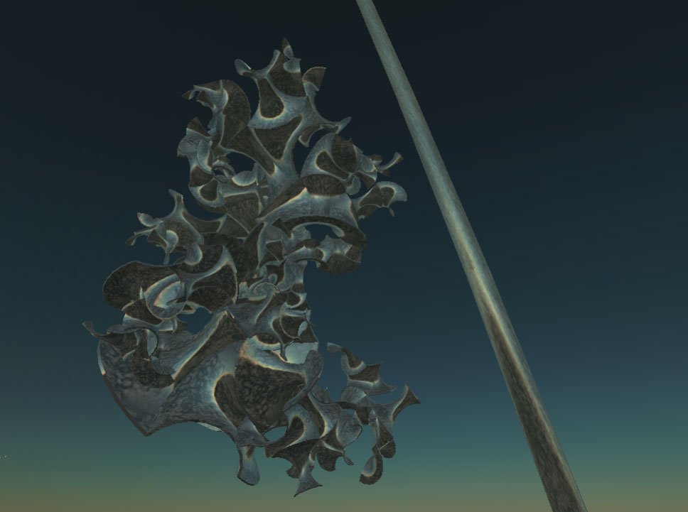 (Jan 2008) "Fractal Tree". This comes from an idea suggested by Scope Cleaver. More experiments with sculpties to get the most out of the prims. This one is good for seeing visually the limit of a geometric series.