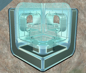 (Feb 2006) The Grail is as much a sculpture as a building, and was not designed with any particular purpose in mind, although it does have a fully functional "elevator" system involving avatar pushes. I had thought for a couple of months about how to build a large structure with no sharp corners (only smooth curves) and no seams. The Grail is one solution to that problem, combining a number of torus shape "discoveries", all worked out using algebra.