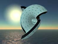 (Jun 2006) A recreation of the house from Robert A. Heinlein's short story "--And He Built A Crooked House". See Hamlet Au's blog entry for an excellent write-up. Hamlet's story got picked up by BoingBoing, Digg et al, and was all over the internet for a couple of days. This slurl should take you to a teleporter to the house.