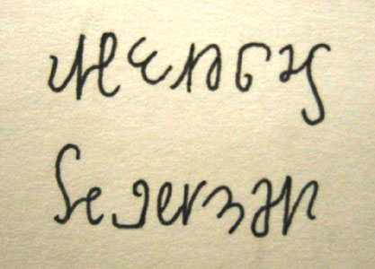 (October 2002) Rotation. This one is both an ambigram and a autologlyph. It's unfortunate that I had to cheat with the first 'y', although at least it is recognisable as a reflected 'y' as opposed to some other letter. Maybe given the context I get a bit more leeway?